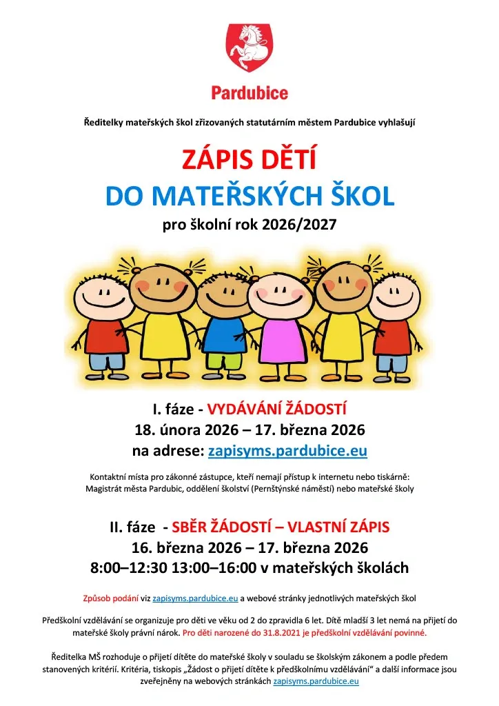 Plakát Zápis do MŠ Pardubice 2026-2027 (PDF, 267.49 KB)